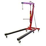 ATD-7485 2 Ton folding mobile engine crane is constructed from high quality steel material. The product has four position designs. It has special eight ton long ram with a by- pass mechanism for safety purposes. It is stable thus it is safe to work with. The crane itself weighs 304 pounds and has dimensions of (73.2 x 6.8 x 4.9) inches. The product has an overall capacity of 4,000 Lbs. It can also be adjusted high enough and can easily be used to swap out the engine of your vehicle. Both the rear and front legs are adjustable. After use, the units can be folded for easy and compact storage. Because it meets safety standards such as the AMSE/ANSI-PALD standards it is one of the safest models you could purchase. One important thing to note is that because of the height it can raise the arm to, it is possible to load your engine on to the flat bed of most pickup trucks.